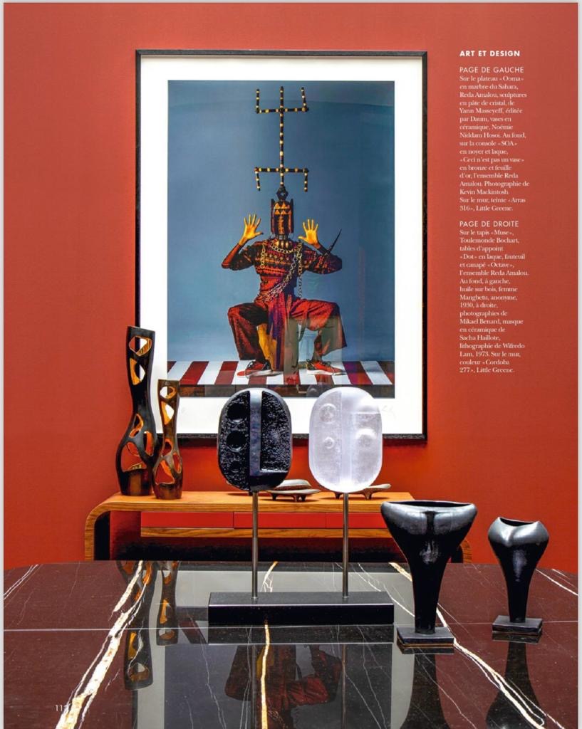 Notable too, is how the ancient mysticism of Africa fuses seamlessly with his own legacy of European fables: his effortless grasp of Fellini-esque surrealism with contemporary magical realism and his strangely unquiet magpie interiors of memories lost and found.They all form part of Kevin’s Universe- a meeting of still-life, fashion and a sense of sense of theatre.